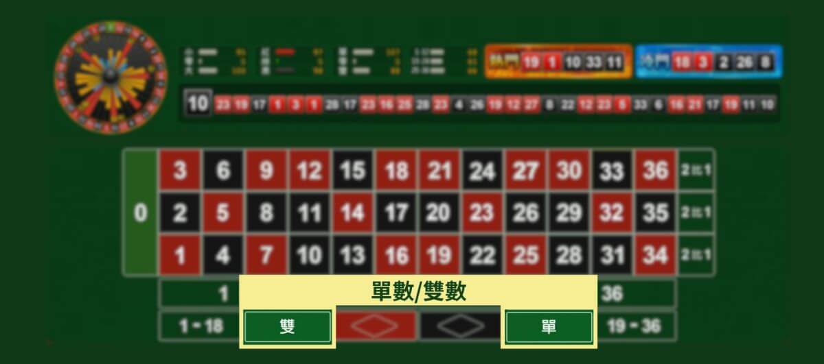將代幣放在你想押的「單數(奇數)」或「雙數(偶數)」格子, 若結果對應成功,賠率為 1:1。